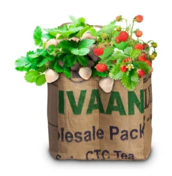 Jeder Beutel ist mit einem einzigartigen Motiv versehen, da er aus gebrauchten Verpackungsballen von Teeplantagen in Indien recycelt wurde! Dank dieses Fair-Trade-Projekts haben viele Menschen ein neues Einkommen und wir setzen Rohstoffe nachhaltig ein.