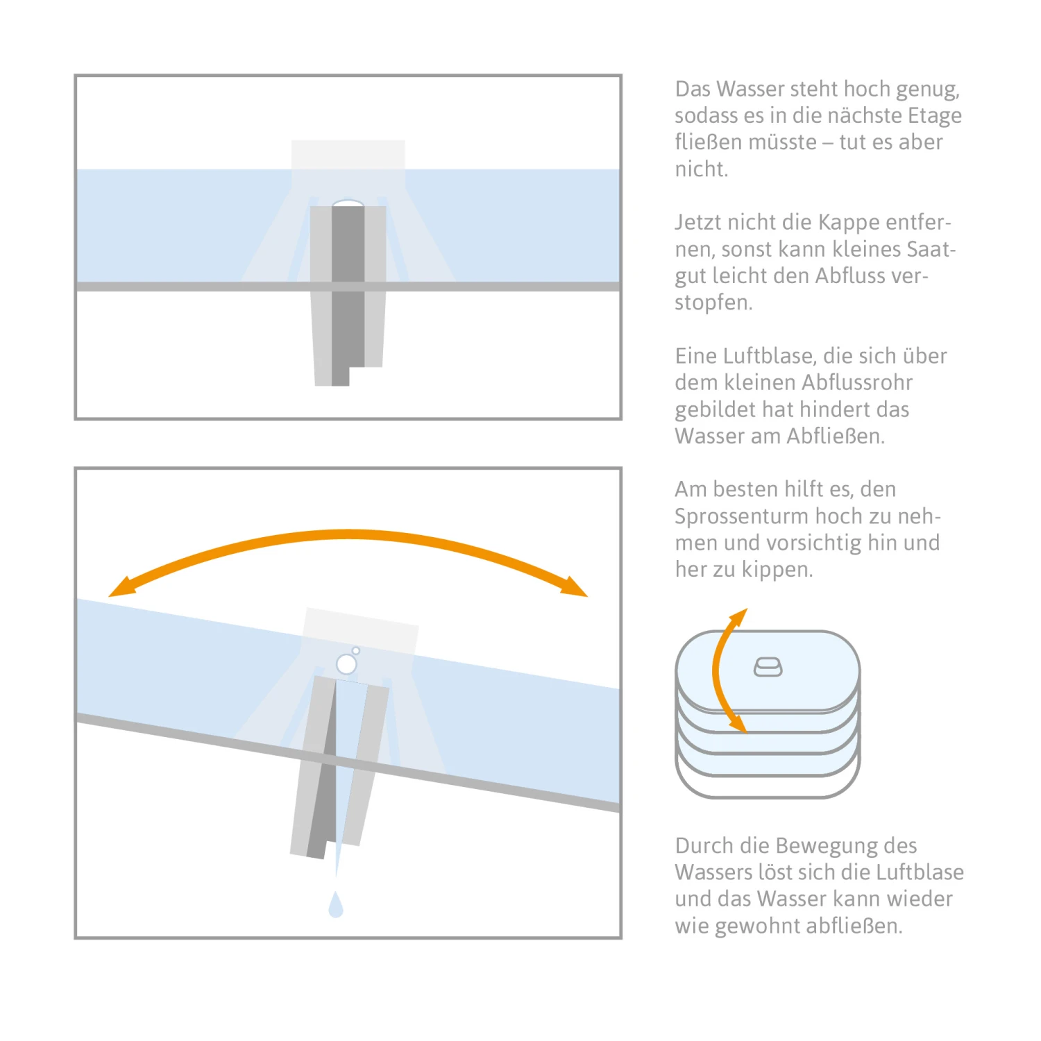 Die Verwendung des Sprossenturms ist leicht. Sie brauchen nur die gut gewaschenen Samen in die einzelnen Etagen geben. Die Keimschalen sind luftdurchlässig und ermöglichen eine gute Zirkulation der Luft. Dadurch entsteht das perfekte Klima für die Samen. Stellen Sie den Sprossenturm an einen warmen aber nicht vollsonnigen Platz. Spülen Sie täglich die Samen. Überschüssiges Wasser sammelt sich in der untersten Etage. Dieses können Sie abschütten. Je nach Art benötigen die Sprossen etwa vier Tage. Dann können Sie ernten. Der Sprossenturm ist spülmaschinenfest.