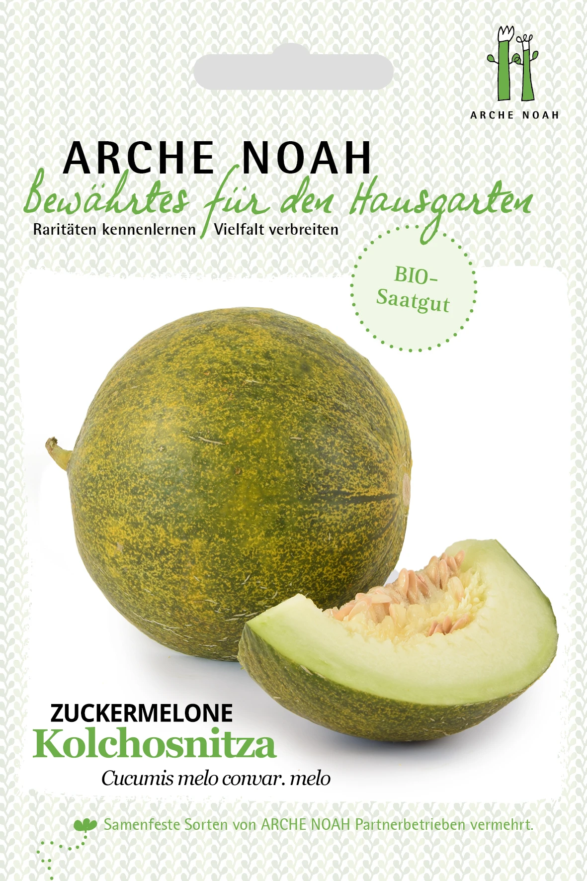 Diese Zuckermelone bildet kleine runde Früchte mit hervorragendem Geschmack. Das Fruchtfleisch ist süß und sehr aromatisch. Die Frucht wird ca. 8-12cm groß, grüngenetzt mit glatter Oberfläche. Reift bei guter Witterung auch im Freiland, Kastenkultur empfehlenswert.